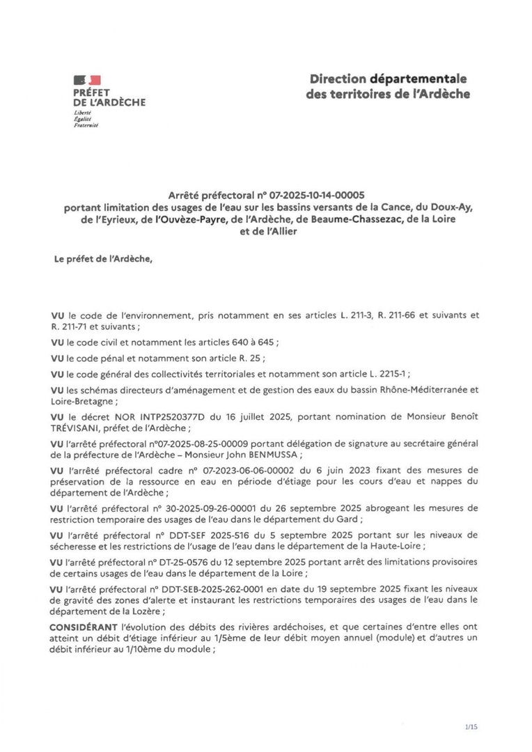 AP 07-2025-10-14-00005 - Limitation des usages de l'eau