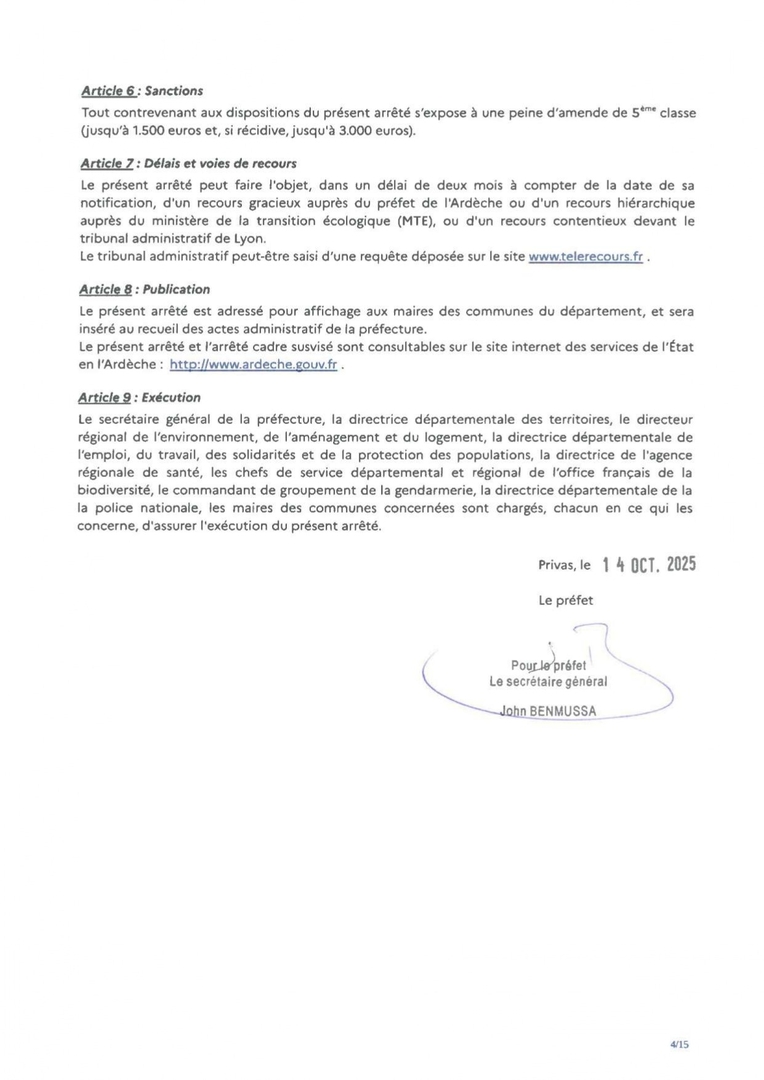 Pour consulter l'Arrêté Préfectoral complet, ouvrir le document ci-dessous :