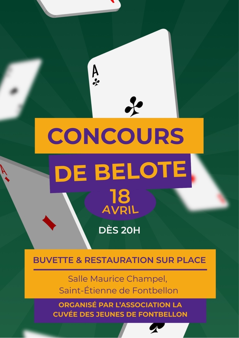 Concours de Belote organisé par La Cuvée des Jeunes de Fontbellon : Samedi 18 avril 2026 - 20h