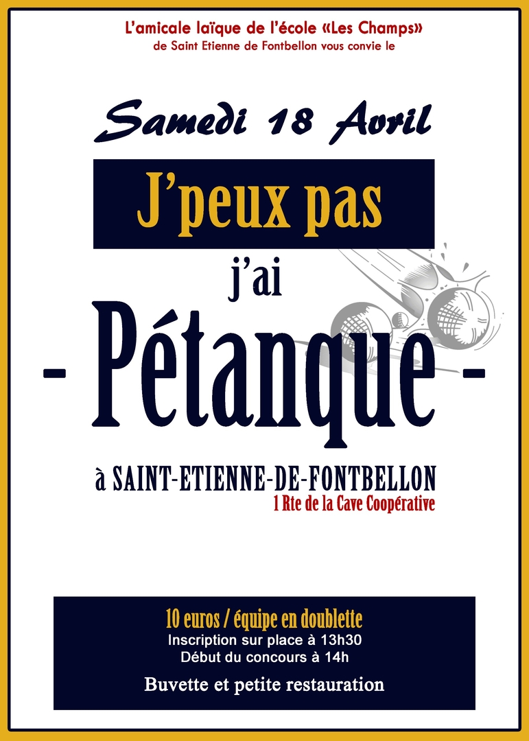 Concours de Pétanque organisé par l'Amicale Laïque : Samedi 18 avril 2026