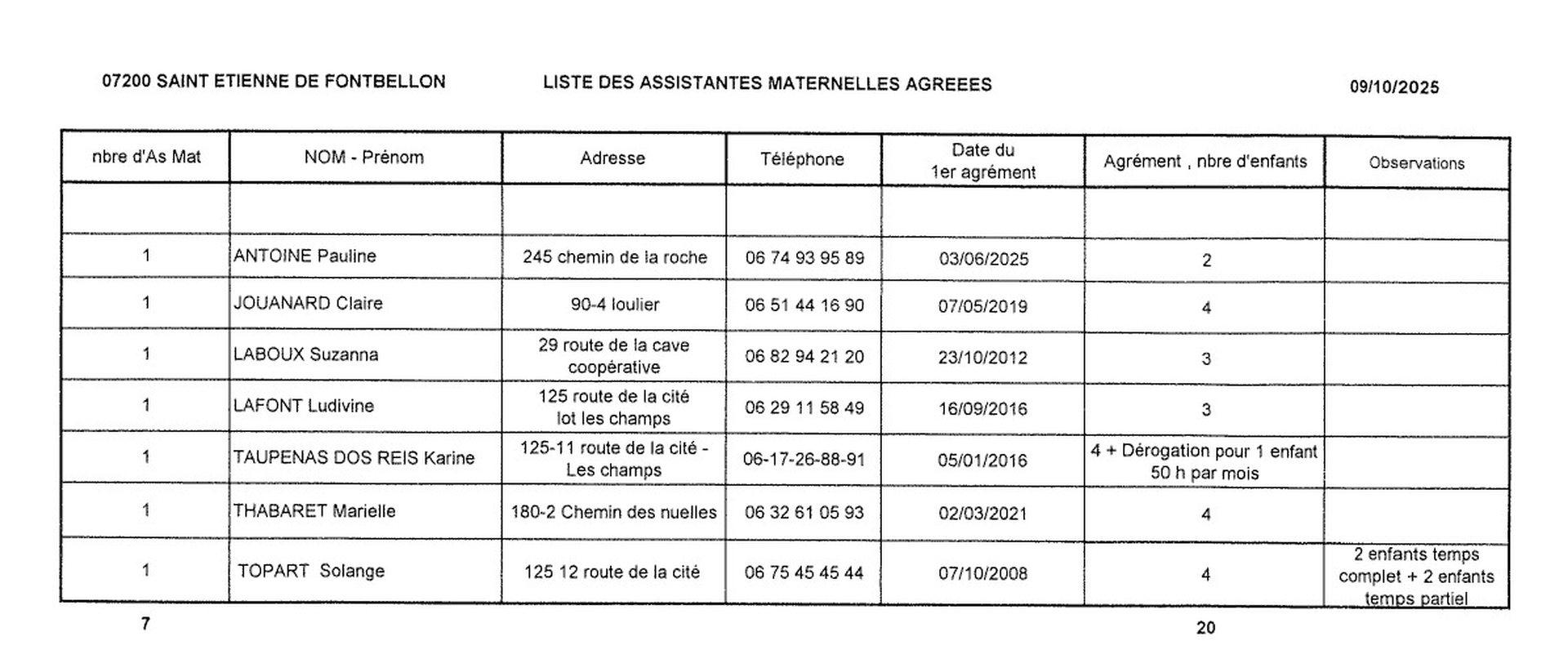LISTES DES ASSISTANTES MATERNELLES AGREEES - Au 09/10/2025 -